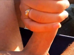 girl jerks hubby's cock at beach