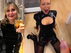 Shiny Rubber Latex Slut Wife Sucking off Cock and Pissed on