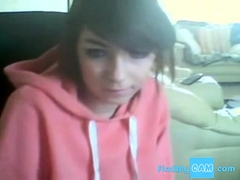 Tender teen with big nipples caresses her pussy on webcam